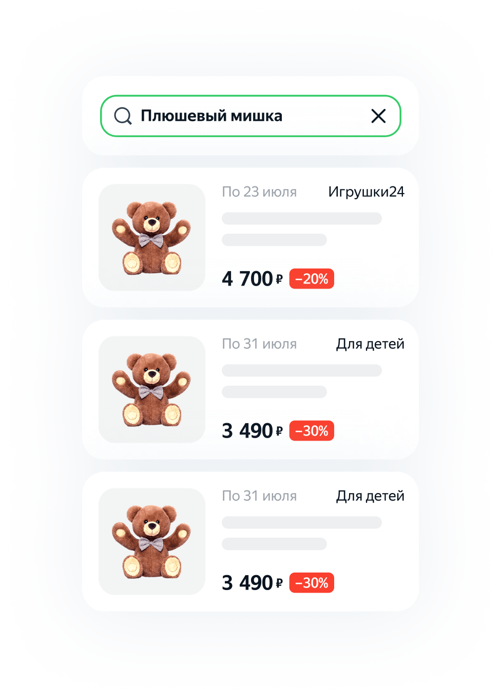 Более 300 000 пользователей начинают свой путь в приложении с поиска. Ваши предложения отображаются в результатах поисковой выдачи, если они соответствуют запросу пользователя.