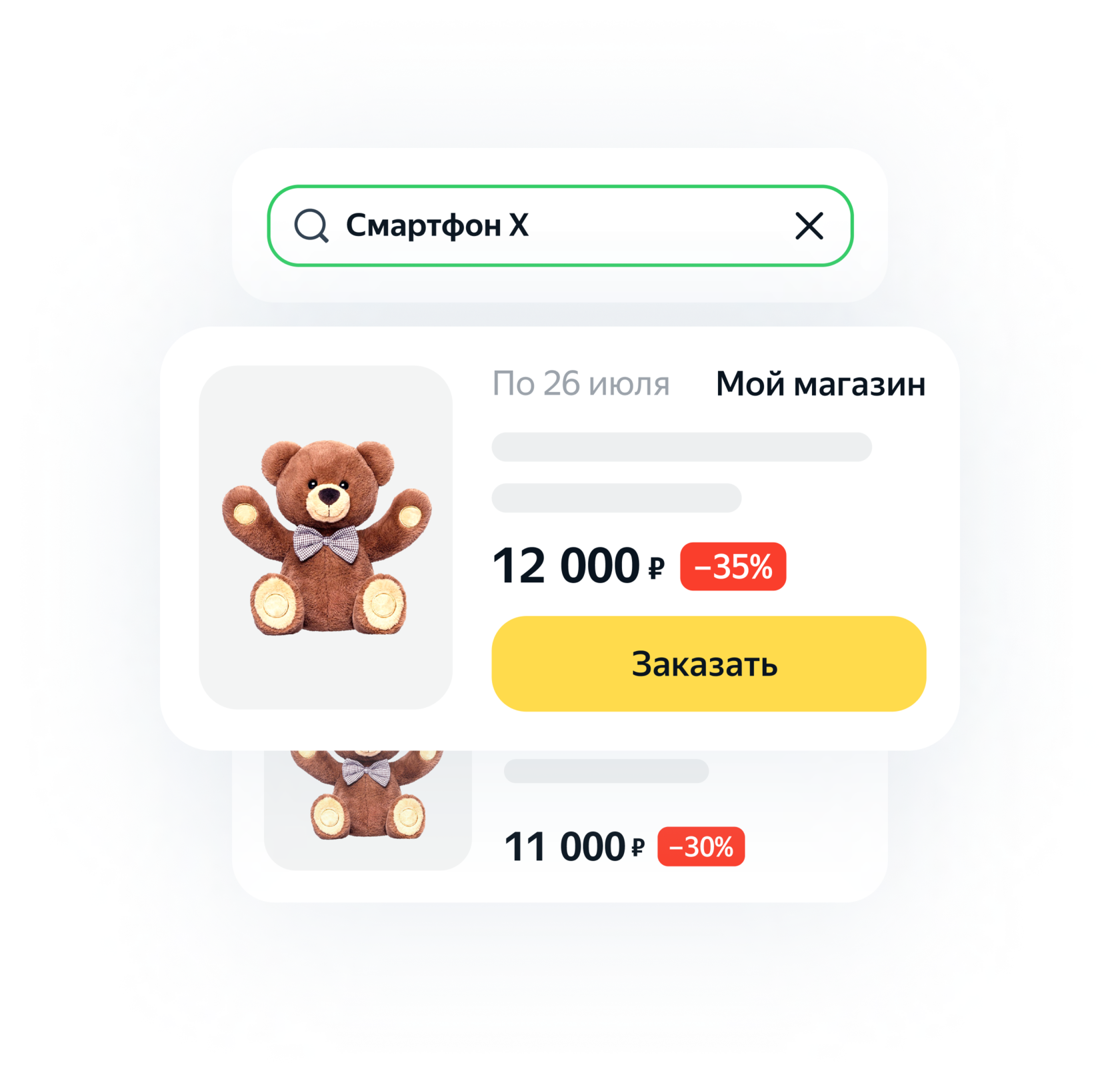 На каждой карточке с предложением есть кнопка «Заказать», которая перенаправляет пользователей в ваш магазин.